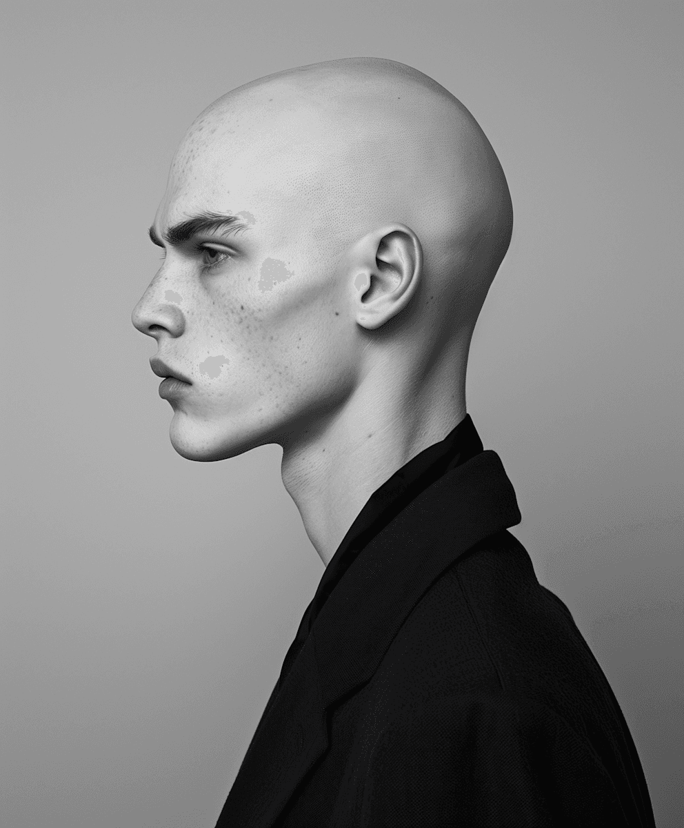 Editorial series on duality and reflection, merging shadow play with metallic textures. Each frame studies contrast — between self and silhouette, gloss and grain.