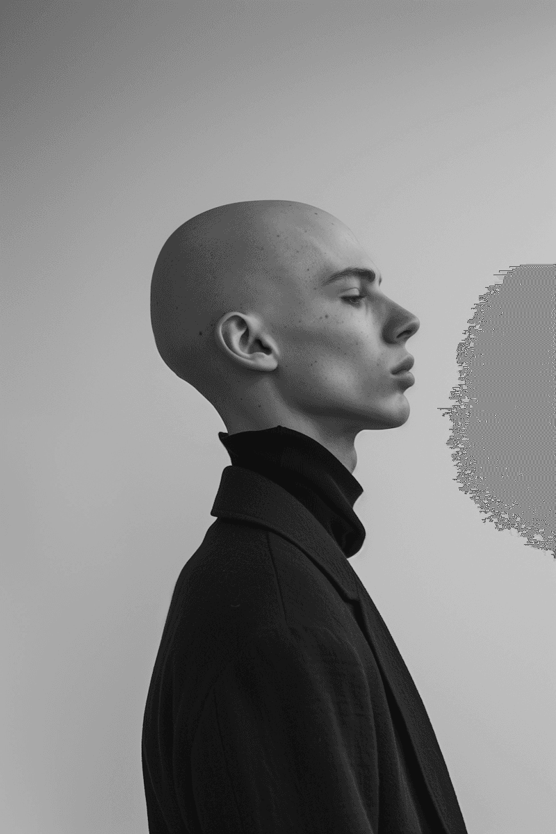 Noir tones, cinematic light, emotional distance